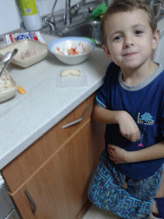 Ayer tuvimos un taller de cocina con las hormigas cocineras. El pobre Arturo no pudo hacerlo, pero hemos tenido una idea. El próximo taller de cocina lo va a poder hacer, es más, tiene que inventar él la receta, con alimentos que pueda comer.